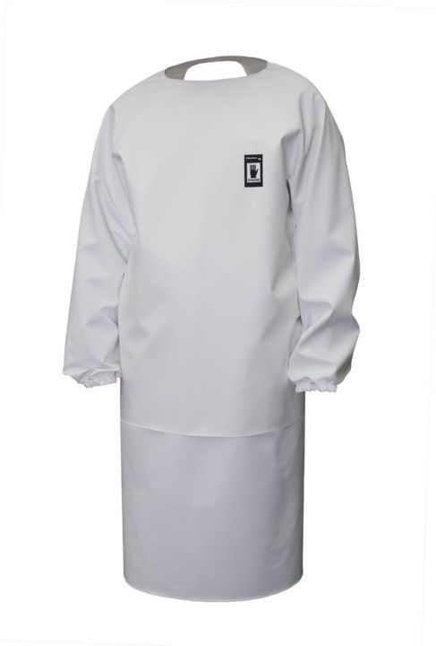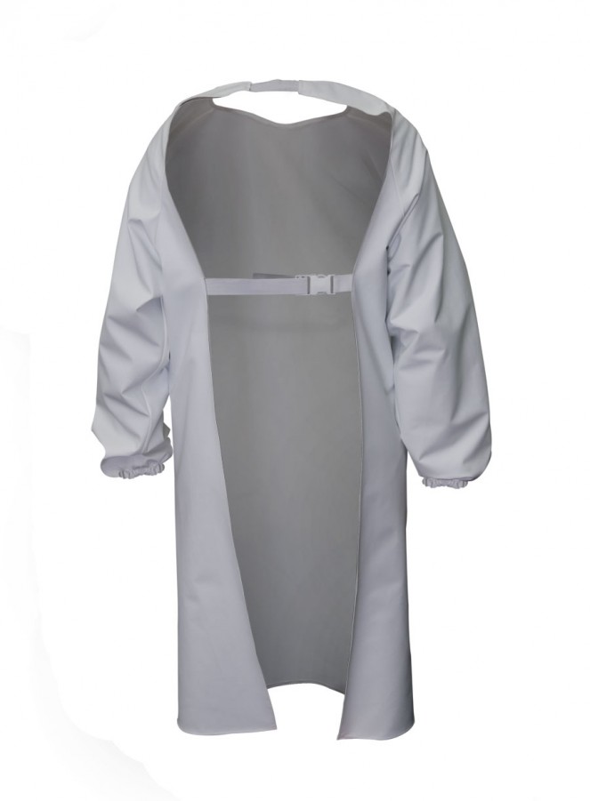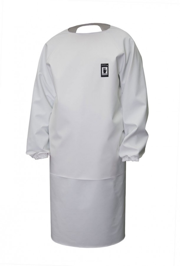 Die Vorderschürze mit Ärmeln und mit der zusätzlichen Verstärkung im Vorderteil. Sie wird aus dem wasserdichten, beständigen gegen Fett, Enzym, Verdauungssäfte und Desinfektionsmittel Stoff Plavitex gefertigt. Das Produkt erfüllt europäische Anforderungen der Norm EN ISO 13688, EN 343.