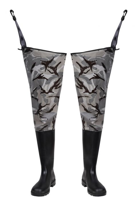 Die Watstiefel in Tarnfarbe versichert eine hervorragende Tarnung mit geschweißten Gummistiefeln. Hergestellt aus dem wasserdichten Stoff Plavitex cotton, auf der Baumwolleunterlage. Dieses Modell kommt immer zum Einsatz beim Angeln und bei anderen Tätigkeiten im Fischfang. Es gewährleistet den wirksamen Schutz der Beine gegen Wasser und Schlamm. Die Technik des beidseitigen Presseschweißen erhöht die Widerstandsfähigkeit der Nähte.
